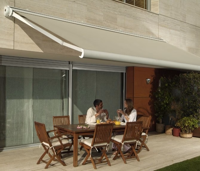Es un sistema de protección solar que se extiende hacia el exterior mediante brazos articulados.